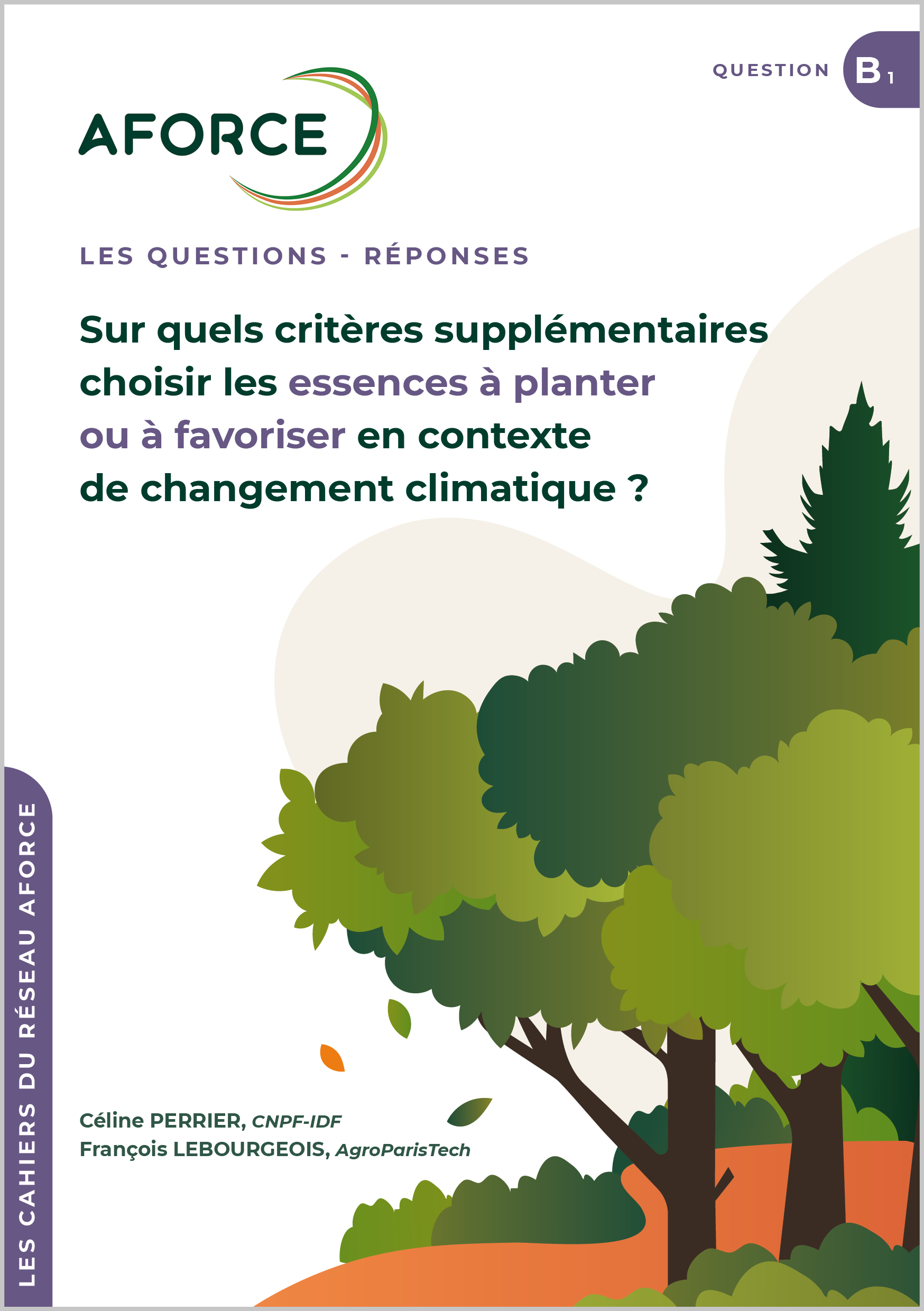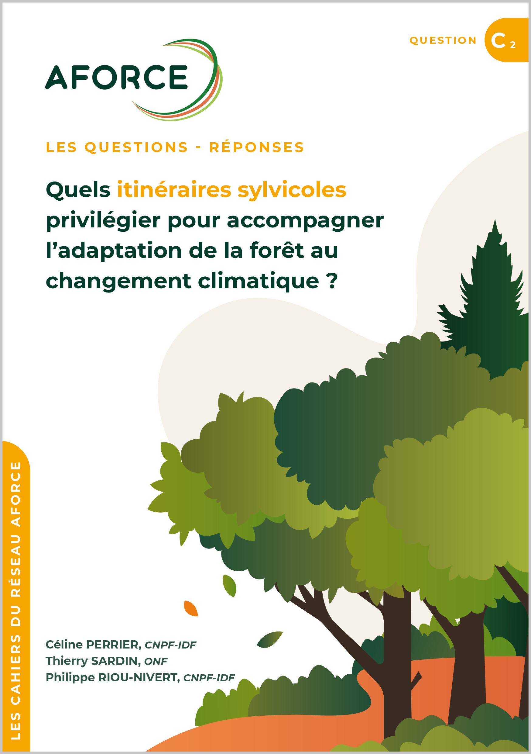 Réalisée sous la coordination de Céline Perrier (CNPF-IDF), avec l’appui d’un groupe de travail réunissant des acteurs issus plusieurs organismes et aux missions variées, la Collection de cahiers « Les Questions-Réponses » d’AFORCE est centrée sur l’adaptation des forêts au changement climatique. Chacun des cahiers de cette collection s’appuie sur les éléments de connaissance et le savoir-faire accumulés du réseau AFORCE et sur une synthèse de documents sélectionnés dans la littérature scientifique et technique. Les questions traitées sont regroupées par thématiques. Les réponses apportées visent à aider le raisonnement du forestier et à soutenir ses décisions pratiques : comprendre l’enjeu, effectuer un bon diagnostic, utiliser les outils appropriés et identifier un panel d’options alternatives.
