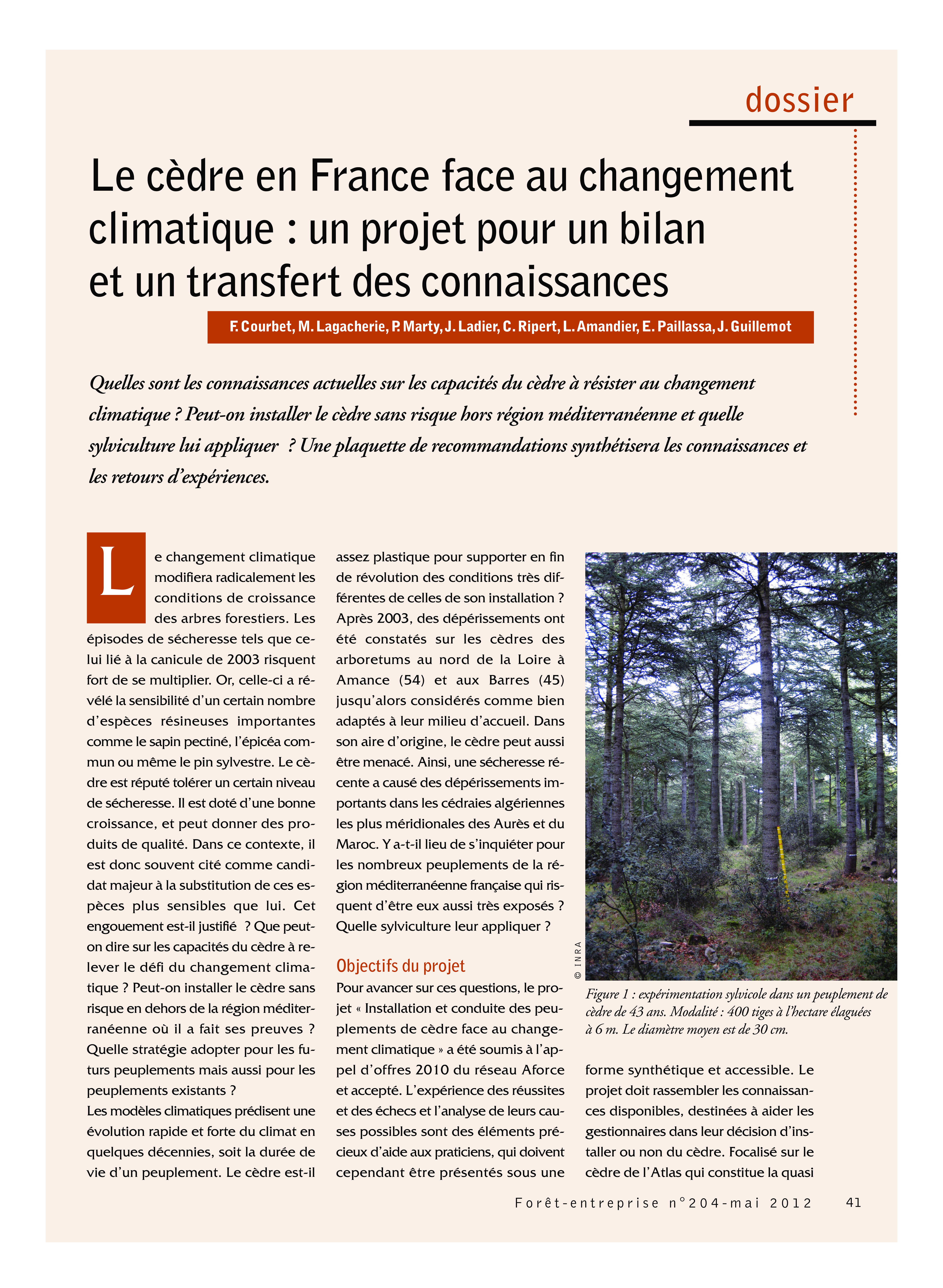 COURBET F. & al., 2012. Forêt Entreprise n°204 in Dossier “Changement climatique : quelques outils pour comprendre et anticiper”. Pages 41-45.