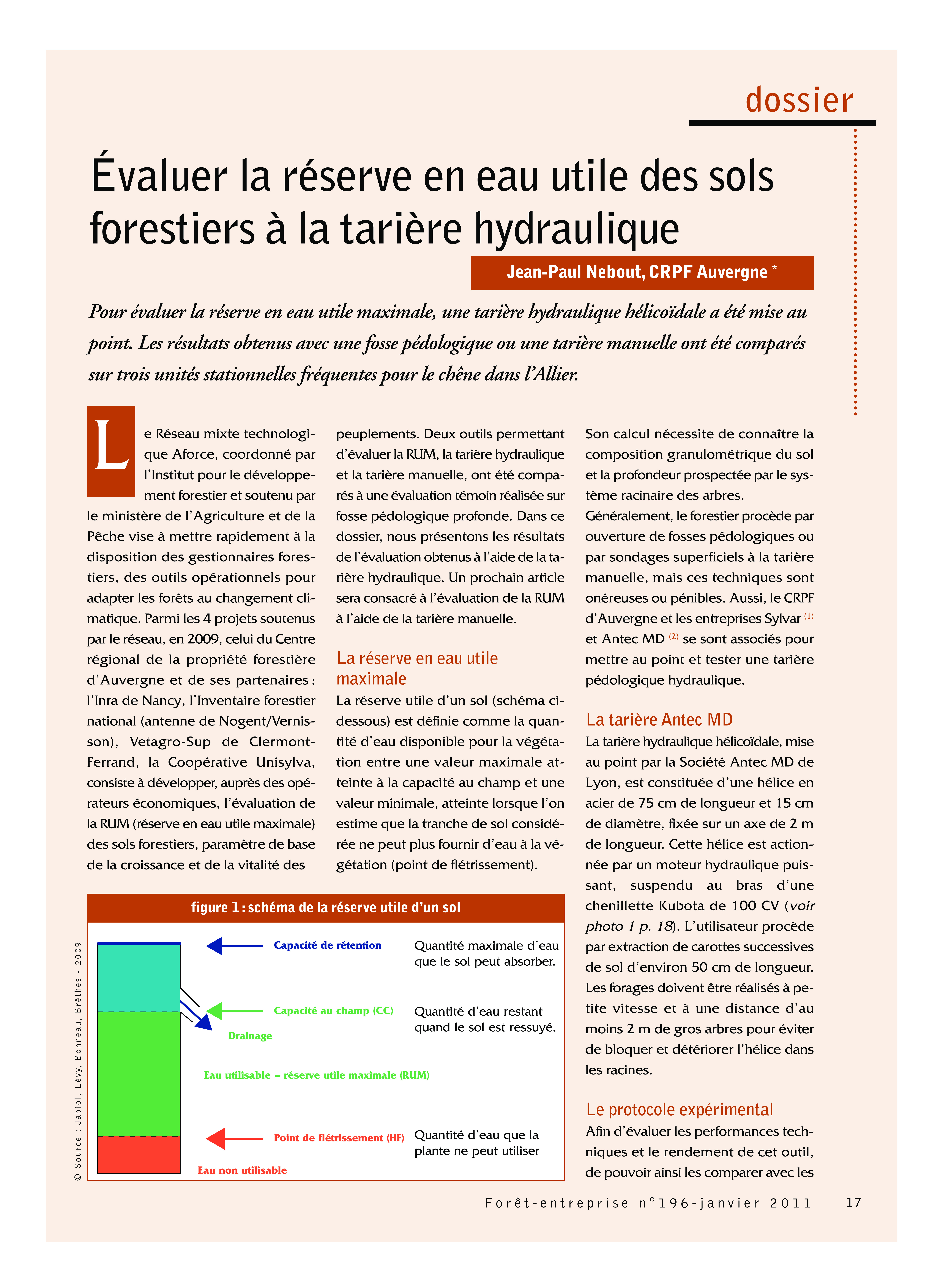 Projet EVALRU - Évaluer la réserve en eau utile des sols forestiers à la tarière hydraulique. Forêt Entreprise n°196