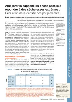 Projet ADAREEX - Améliorer la capacité du chêne sessile à répondre à des sécheresses extrêmes : Réduction de la densité des peuplements. Forêt Entreprise n° 249