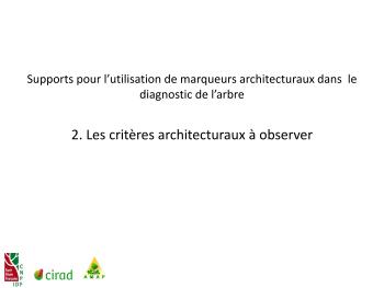 Projet ARCHI - Support pour l’utilisation de marqueurs architecturaux dans le diagnostic de l’arbre. 2. Les critères architecturaux à observer. Diaporama, support de formation