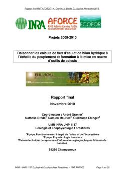 Projet BILJOU - Raisonner les calculs de flux d’eau et de bilan hydrique à l’échelle du peuplement et formation à la mise en œuvre d’outils de calculs. Rapport final