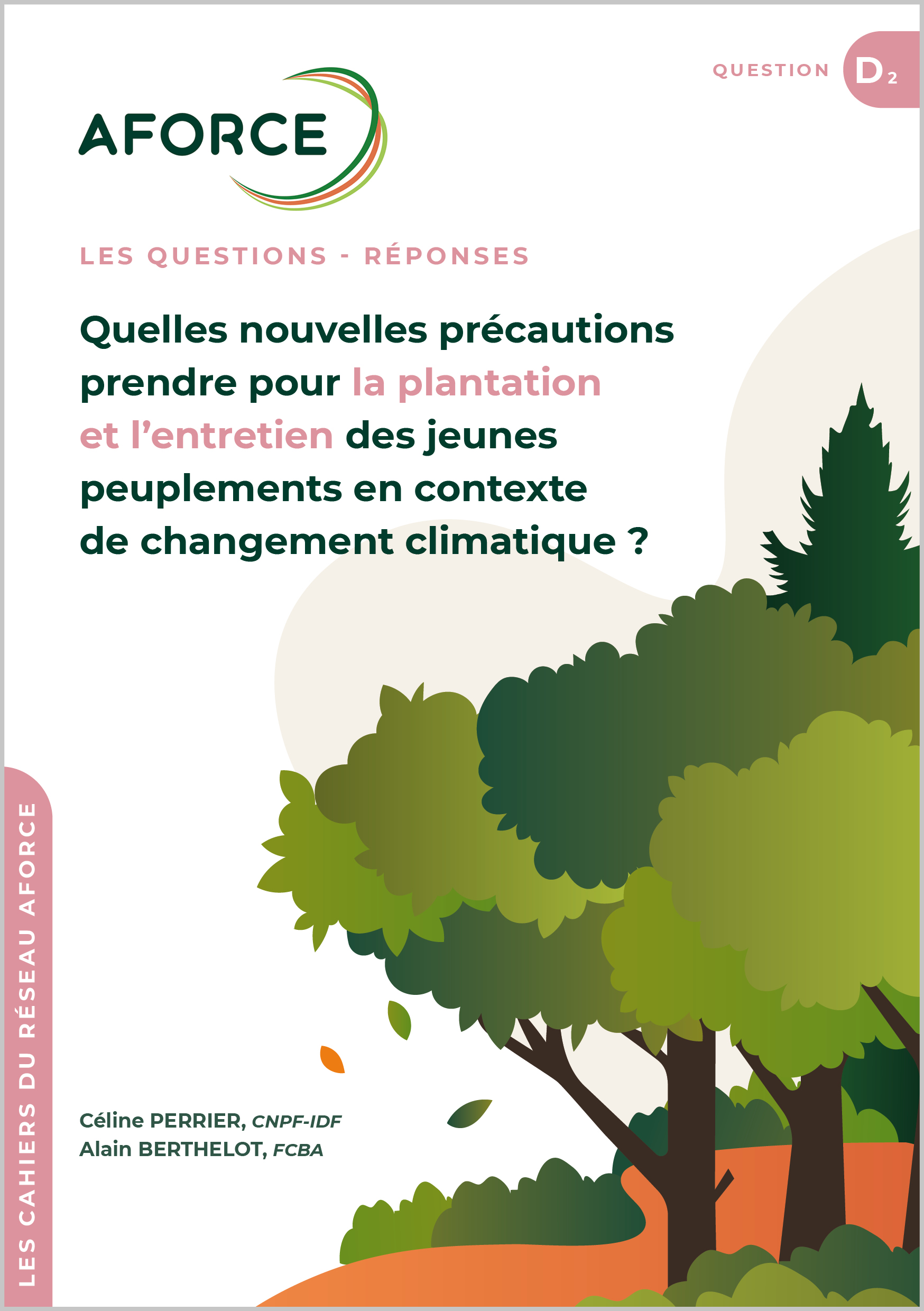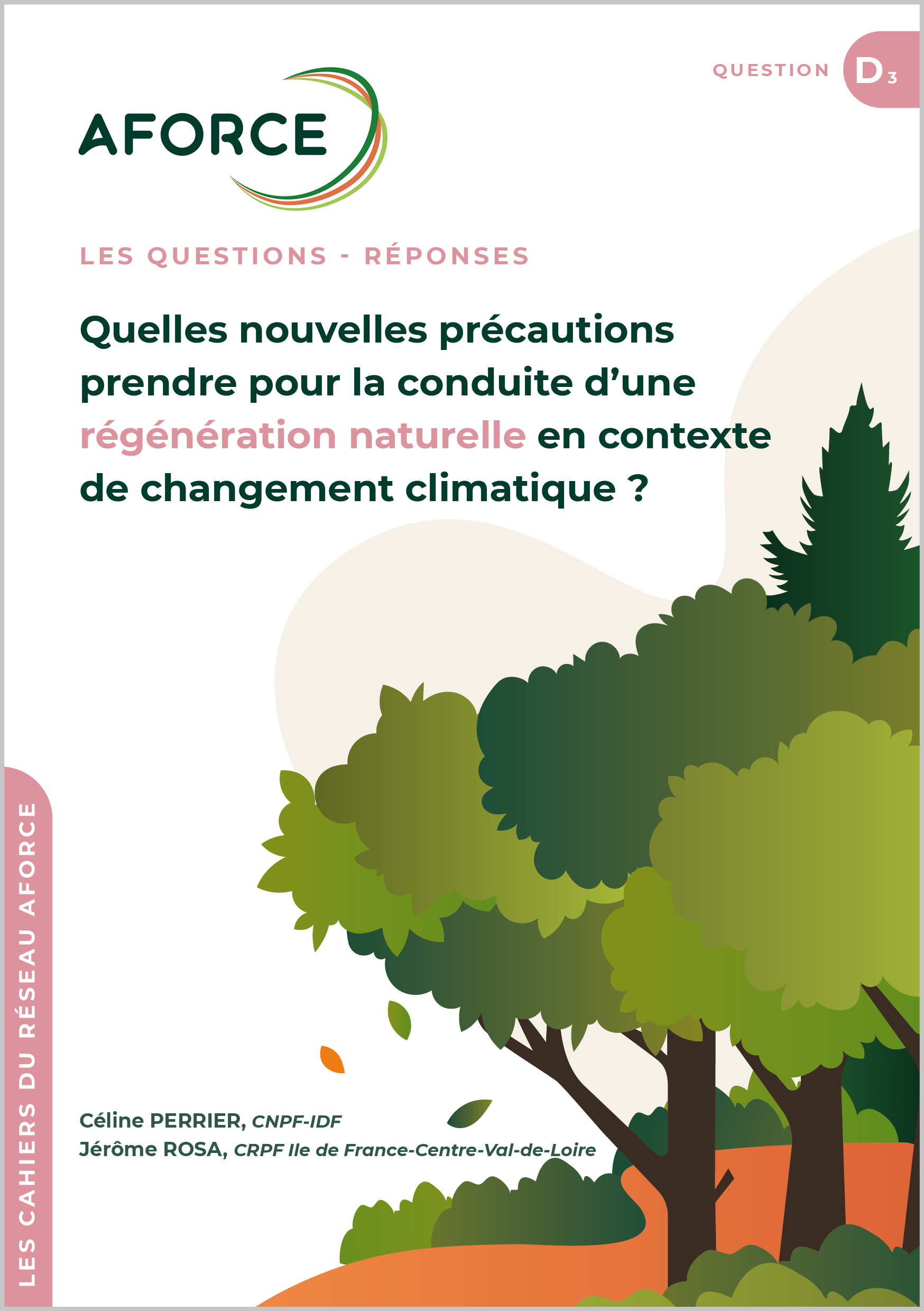 Réalisée sous la coordination de Céline Perrier (CNPF-IDF), avec l’appui d’un groupe de travail réunissant des acteurs issus plusieurs organismes et aux missions variées, la Collection de cahiers « Les Questions-Réponses » d’AFORCE est centrée sur l’adaptation des forêts au changement climatique. Chacun des cahiers de cette collection s’appuie sur les éléments de connaissance et le savoir-faire accumulés du réseau AFORCE et sur une synthèse de documents sélectionnés dans la littérature scientifique et technique. Les questions traitées sont regroupées par thématiques. Les réponses apportées visent à aider le raisonnement du forestier et à soutenir ses décisions pratiques : comprendre l’enjeu, effectuer un bon diagnostic, utiliser les outils appropriés et identifier un panel d’options alternatives.