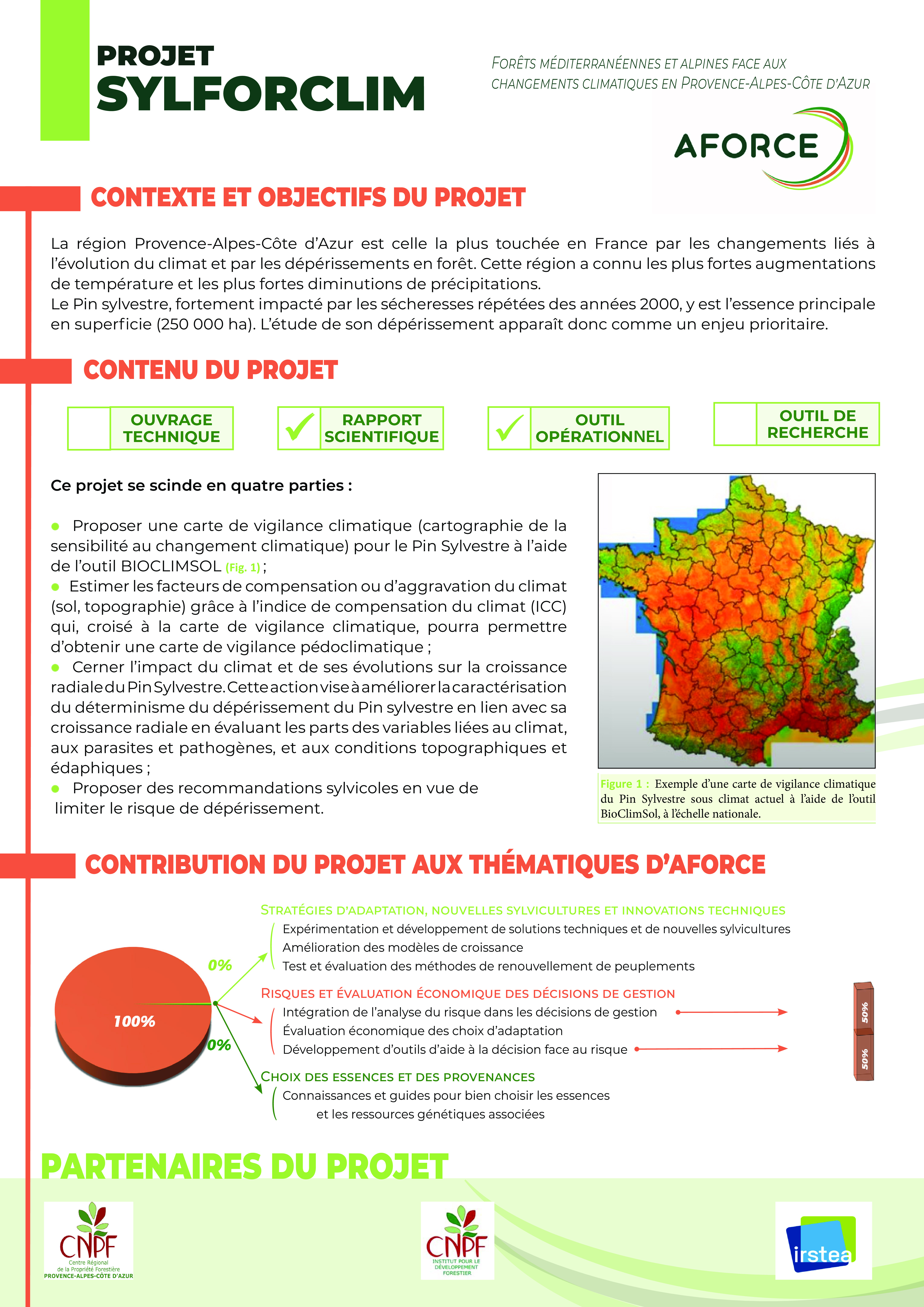 Le projet SYLFORCLIM a pour objectif de produire un outil numérique directement utilisable par les gestionnaires et propriétaires forestiers, leur permettant de connaître le niveau de vigilance vis-à-vis du changement climatique.