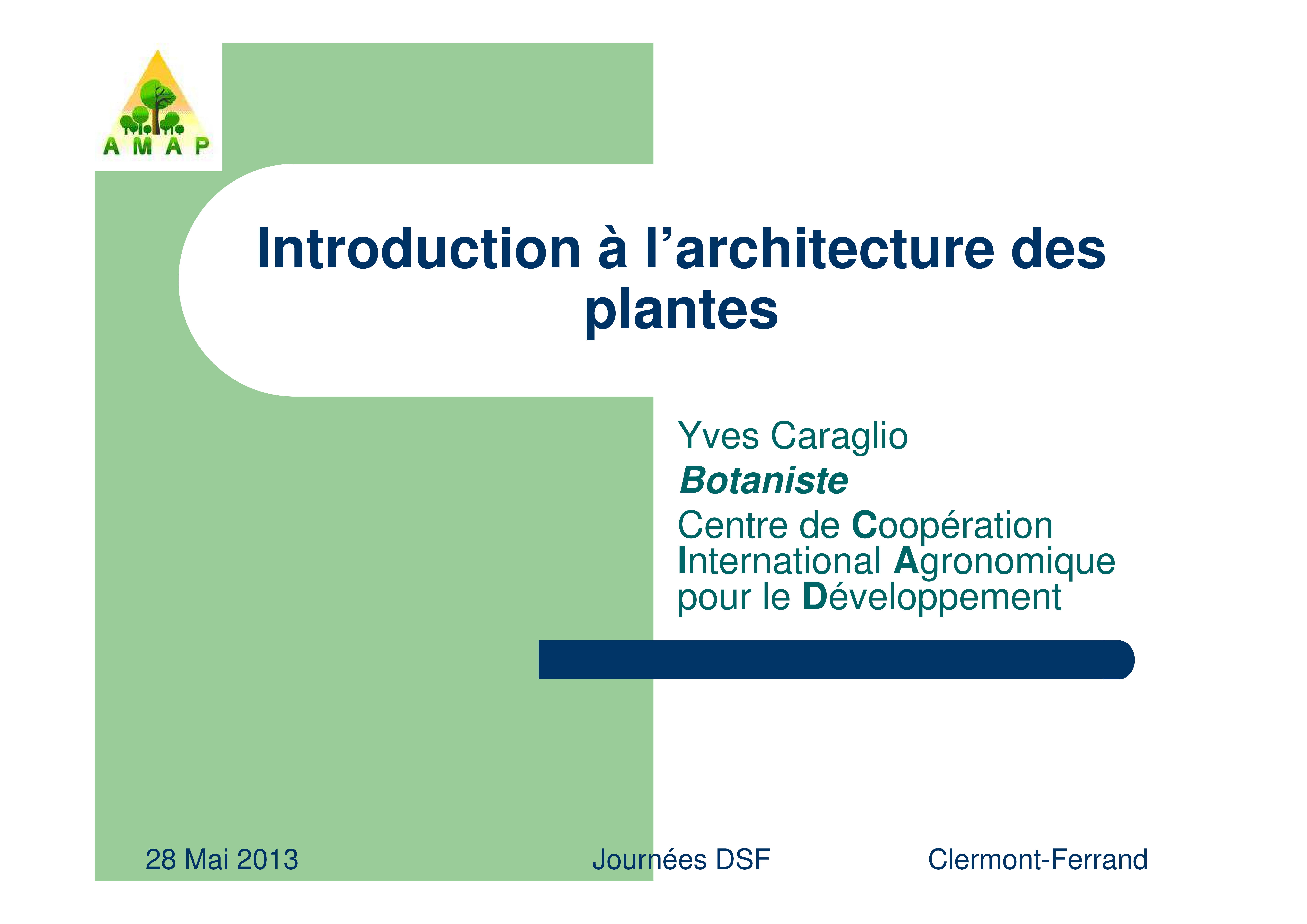 CARAGLIO Y., 2013. Introduction à l’architecture des plantes. Diaporama support de formation. Cirad. 80 diapositives.