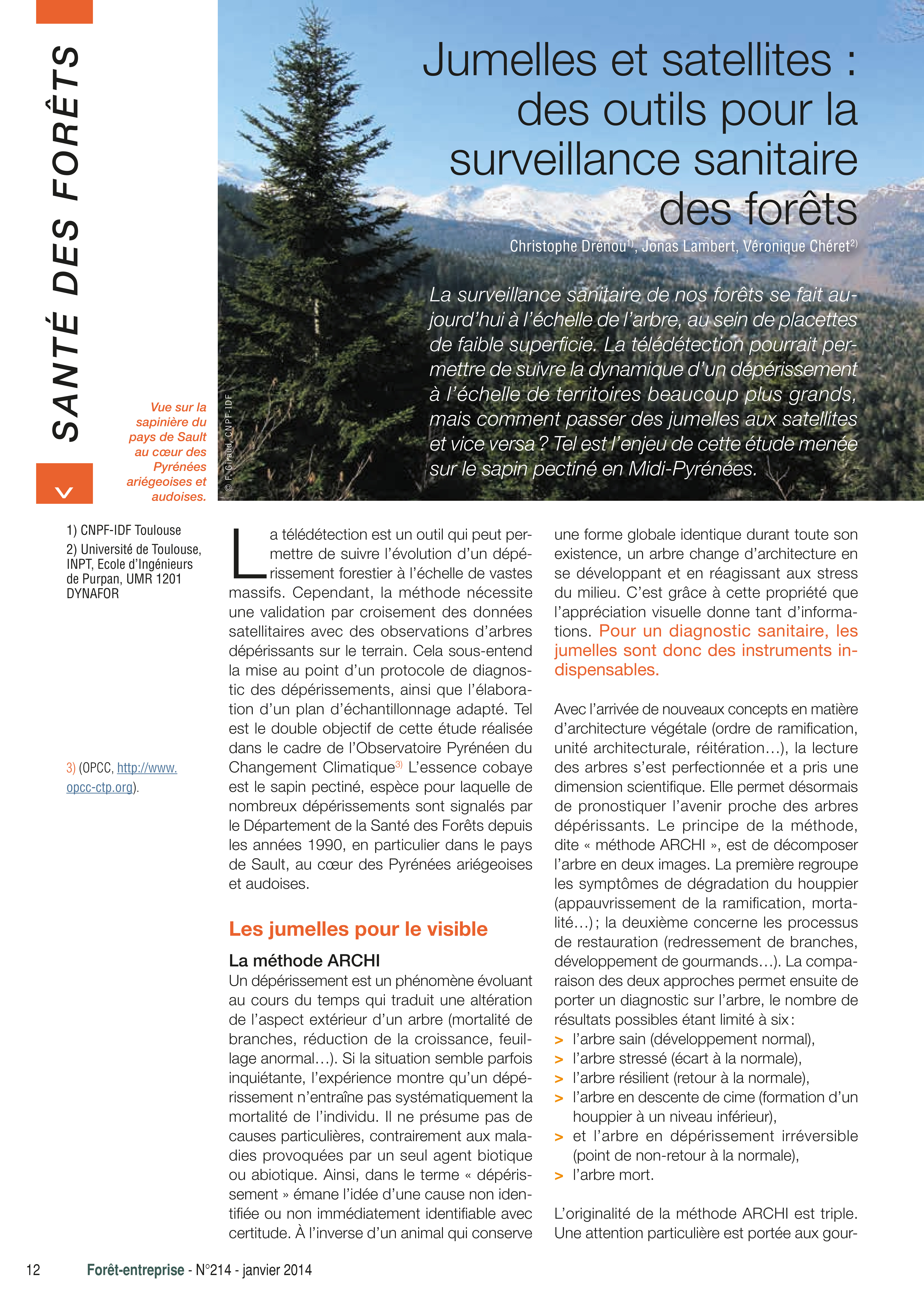 Projet ARCHI - Jumelles et satellites : des outils pour la surveillance sanitaire des forêts. Forêt Entreprise n° 214