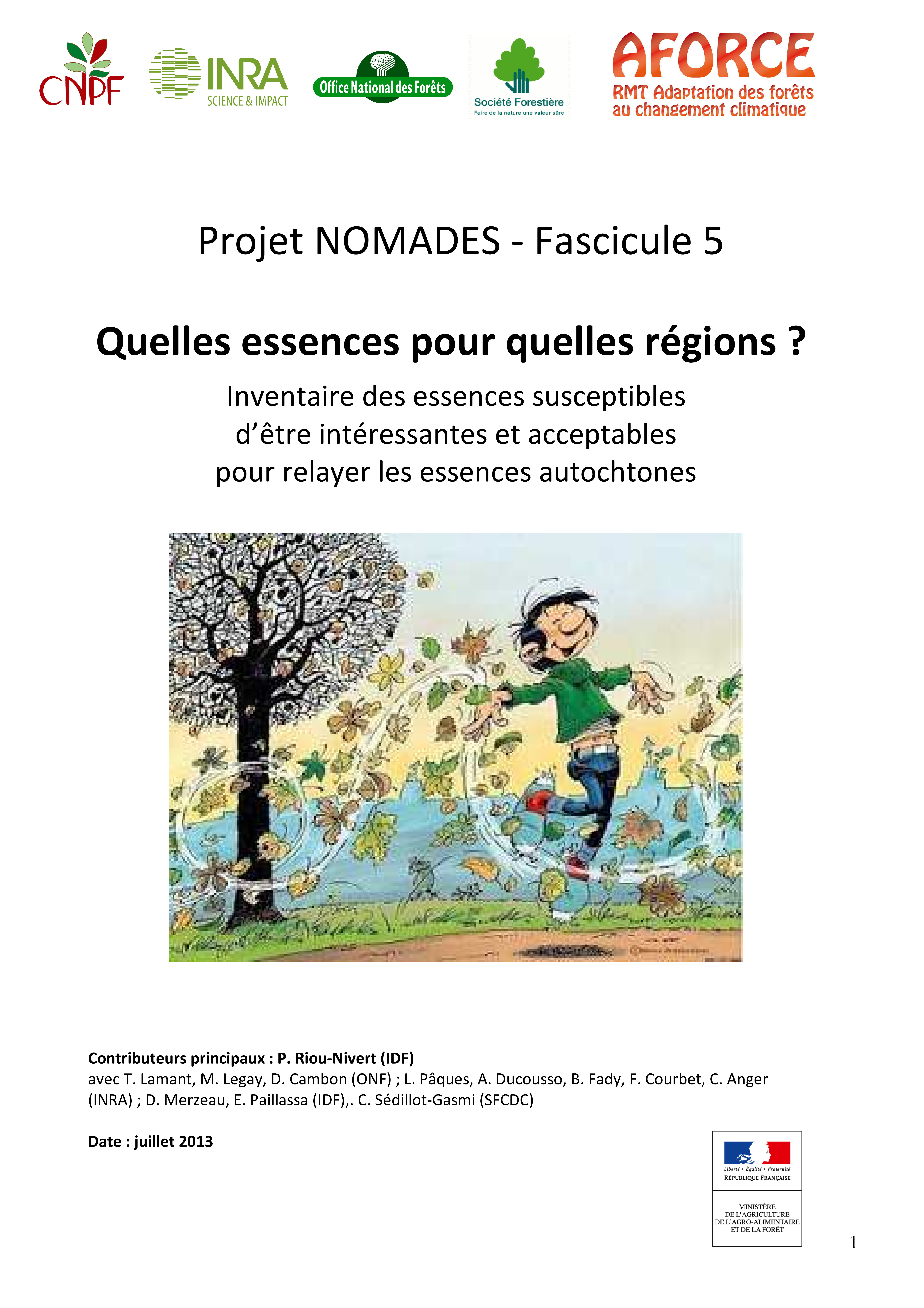Projet NOMADES - Quelles essences pour quelles régions ? Inventaire des essences susceptibles d'être intéressantes et acceptables pour relayer les essences autochtones. Fascicule 5
