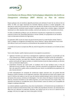 Contribution du Réseau Mixte Technologique Adaptation des forêts au changement climatique (RMT Aforce) au Plan de relance (2020).