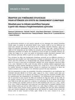 Projet ADAREEX - Adapter les itinéraires sylvicoles pour atténuer les effets du changement climatique. Résultats pour la chênaie sessiliflore française à partir des réseaux d’expérimentations sylvicoles. Revue Forestière Française n°69