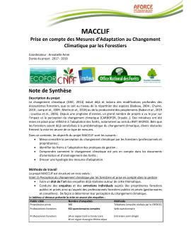 Projet MACCLIF - Prise en compte des Mesures d’Adaptation au Changement CLImatique par les gestionnaires Forestiers. Note de synthèse
