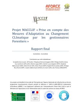 Projet MACCLIF - Prise en compte des Mesures d’Adaptation au Changement CLImatique par les gestionnaires Forestiers. Rapport final