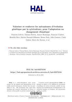 Projet IGS - Valoriser et renforcer les mécanismes d’évolution génétique par la sylviculture, pour l’adaptation au changement climatique. Revue forestière Française n°72
